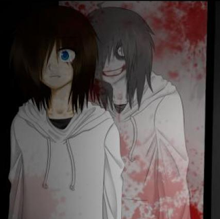 "¿Qué? ¿qué le pasa a mi cara?" Preguntó Jeff. Salió de la cama y corrió al baño. Se miró al espejo y vio la causa de la angustia. Su cara era...era horrible. Sus labios estallaron quedando en una sombra de rojo profundo, su cara se volvió completamente blanca y su cabello cambió de castaño a negro. Lentamente se tocó la cara. Tuvo unos sentimientos superficiales por esto. Miró a su familia y luego al espejo.